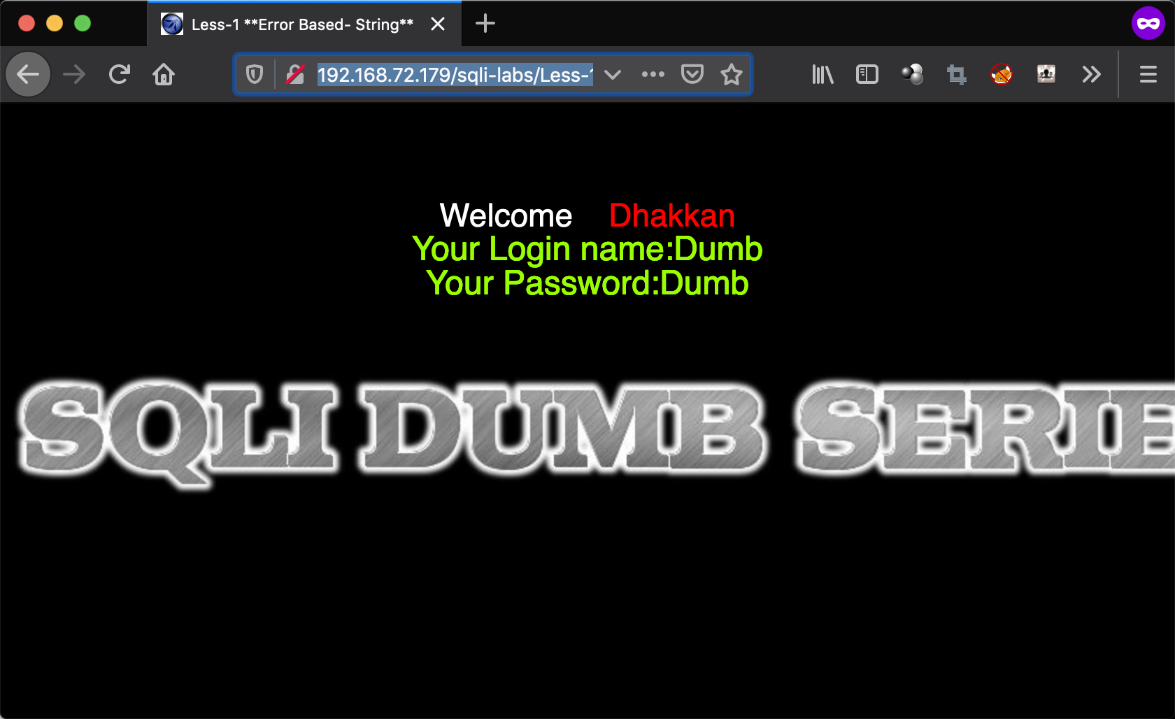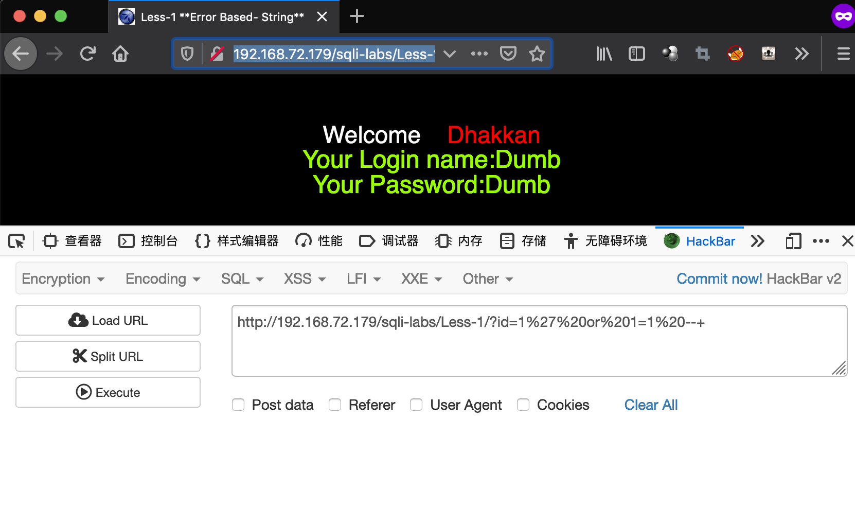 http://192.168.72.179/sqli-labs/Less-1/?id=1' or 1=1 –+